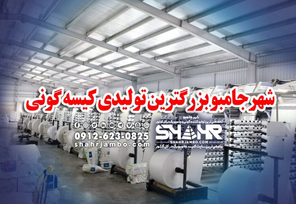 اولین وبزرگترین تولید کننده عمده کیسه گونی در ایران، شهرجامبو است که با تولید عمده کیسه گونی پرچمدار تولید گونی در ایران است که با تولید روزانه 10000هزار کیسه گونی در 5 بخش مجزا قادر به تولید پارچه گونی وبیگ بگ و تسمه جامبوبگ در تناژ بالا هستیم.