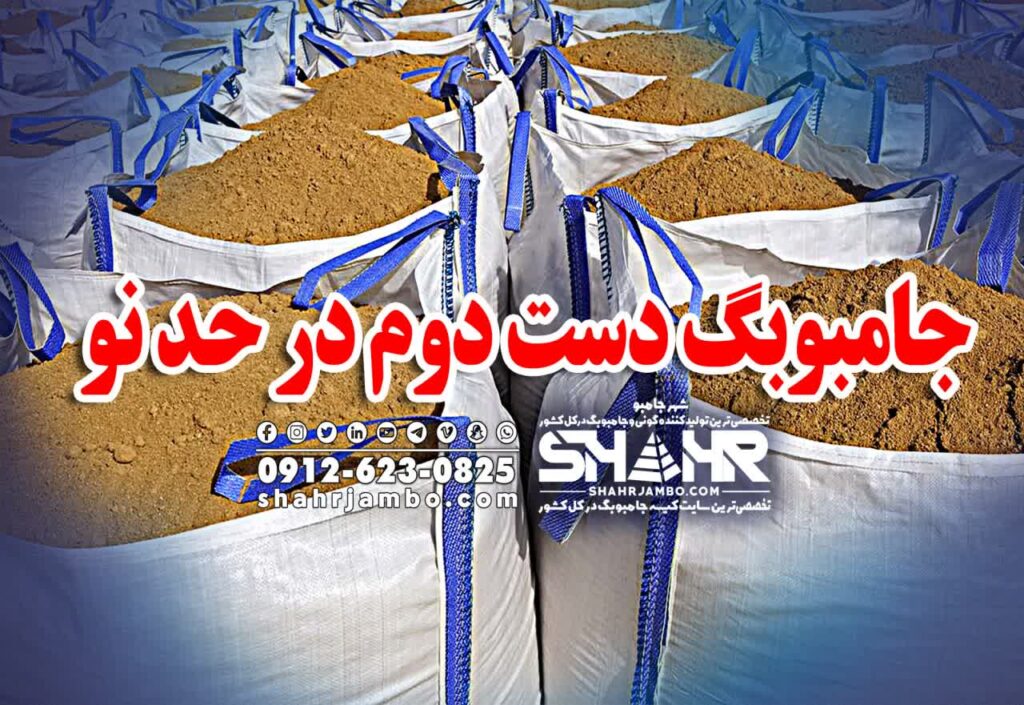 جامبوبگ دست دوم یا در حد نو به کیسه جامبو هایی گفته می شود، که از آنها محصولات به صورت فنی و حرفه ای بدون هیچ گونه خراشیدگی یا پارگی در قسمت های انتهایی یا بالایی تخلیه شده است، گونی جامبو به صورت سالم تخلیه و بارگیری شده است. این کیسه ها به کارخانه شهر جامبو منتقل می شوند و دوباره بازبینی و ایرادات جزئی و کلی آنها گرفته می شود و دوباره به چرخه مصرف تحت عنوان کیسه جامبوبگ دست دوم یا کیسه بیگ بگ دست دوم باز می گردد. این کیسه ها تقریبا قیمت مناسب تری نسبت به جامبوبگ های نو دارد و مقرون بصرفه تر است. جامبوبگ دست دوم ازسایز 80 در 80در80 تا سایز 95در 95 در 180 ادامه دارد که بسته به نوع مصرف و بارگیری نوع محصول آن است.