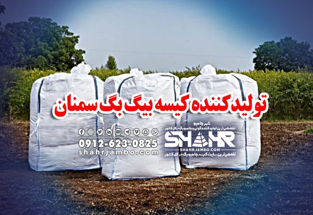 بزرگترین تولیدی و تولید کننده کیسه جامبوبگ و کیسه بیگ بگ در سمنان، گروه کارخانجات شهرجامبو می باشد که با تولید انواع کیسه بیگ بگ و کیسه جامبوبگ در تیراژ 1500 تخته در روز است که با بهترین متریال و بهترین دستگاه روز دنیا تهیه و تولید می شود که در شهر سمنان واقع شده است که با سریع ترین حالت ممکن این کیسه ها به دست مشتریان در شهر سمنان خواهد رسید. شهرجامبو نمایندگی تولید جامبوبگ در سمنان است.