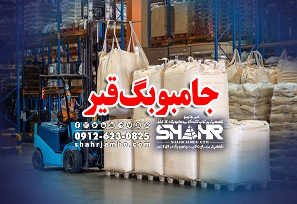قیمت جامبو بگ در سمنان هیچ فرقی با استان یا مکان دیگر ندارد فروش جامبوبگ و قیمت گذاری جامبوبگ بسته به نوع بار و سفارش شما مشتریان عزیز انجام می شود، قیمت کیسه جامبوبگ ها به نوع متریال های و نوع تسمه های آن بستگی دارد که هرچه متریال گرماژ یا همان کیفیت پارچه بیشتر باشد، قیمت کیسه جامبوبگ افزایش می یابد. قیمت جامبوبگ ها از یک بازه ای شروع می شود که حدود 50 هزار تومان الی 150 هزار تومان است. که برای هماهنگی و استعلامات لازم برای خرید با شماره تماس 0825-623-0912 تماس حاصل فرمائید.