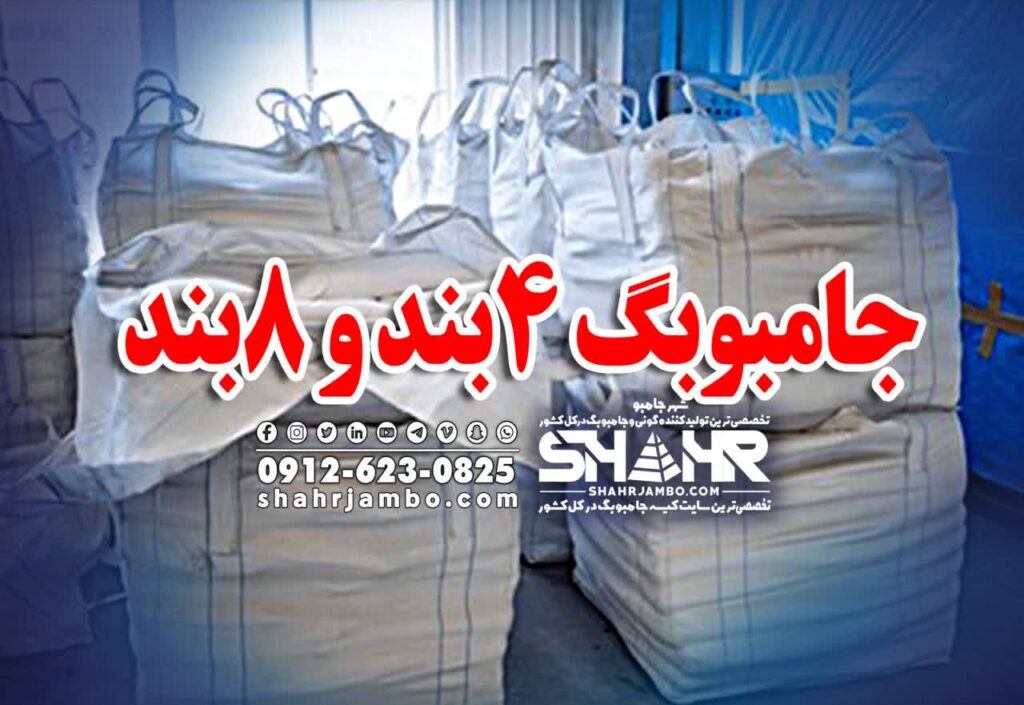 جامبو بگ هایی گفته می شود که دارای چهار دسته یا 4 بند می باشد، که این دسته ها از پلی پروپیلن تولید شده است که از چهار وجه بغل آن متصل می شوند و با نخ های جامبو بگ به هم متصل می شوند. این دسته ها به عرض 30 سانت از بالا بیرون می ماند تا انواع جرثقیل، لیفتراک و غیره… است.
