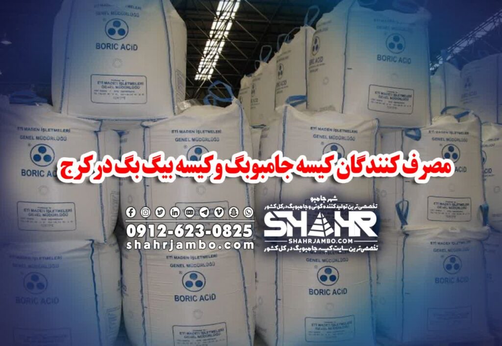 مصرف کنندگان جامبوبگ در کرج بیشتر کارخانه های تولیدی هستند که بیشتر کیسه گونی و کیس هجامبوبگ مصرف می کنند و این کارخانه ها برای رساندن محصولات به مقصد از کیفیت های بسیار بالایی مصرف می کنند. این کارخانه ها بیشتر از کیسه جامبوبگ نو و سفارشی سنگین بافت استفاده می کننده که قیمت مقرون به صرفه ای دارد.