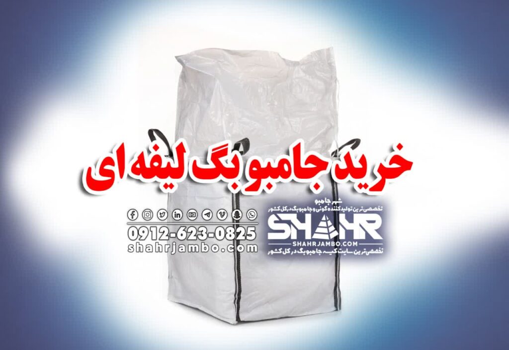 خرید جامبو بگ لیفه ای برای مصارفی است که با بیل مکانیکی یا مصارفی که با دست یا دستگاه های خاص دیگر داخل جامبو بگ بارگیری می شوند، استفاده می شود که این جامبو بگ ها دهانه به عرض 1 متر به جنس ضد آب یا هان لمینت به بدنه جامبو بگ یا همان دهانه جامبو بگ دوخته می شود، و در قسمت بالایی آن یک نخ به جنس پلاستیکی وجود دارد که با کشیدن آن دهانه جامبو بگ به طور کلی پلمپ می شود و از ورود هرگونه مواد یا آب به داخل کیسه محافظت می نماید.