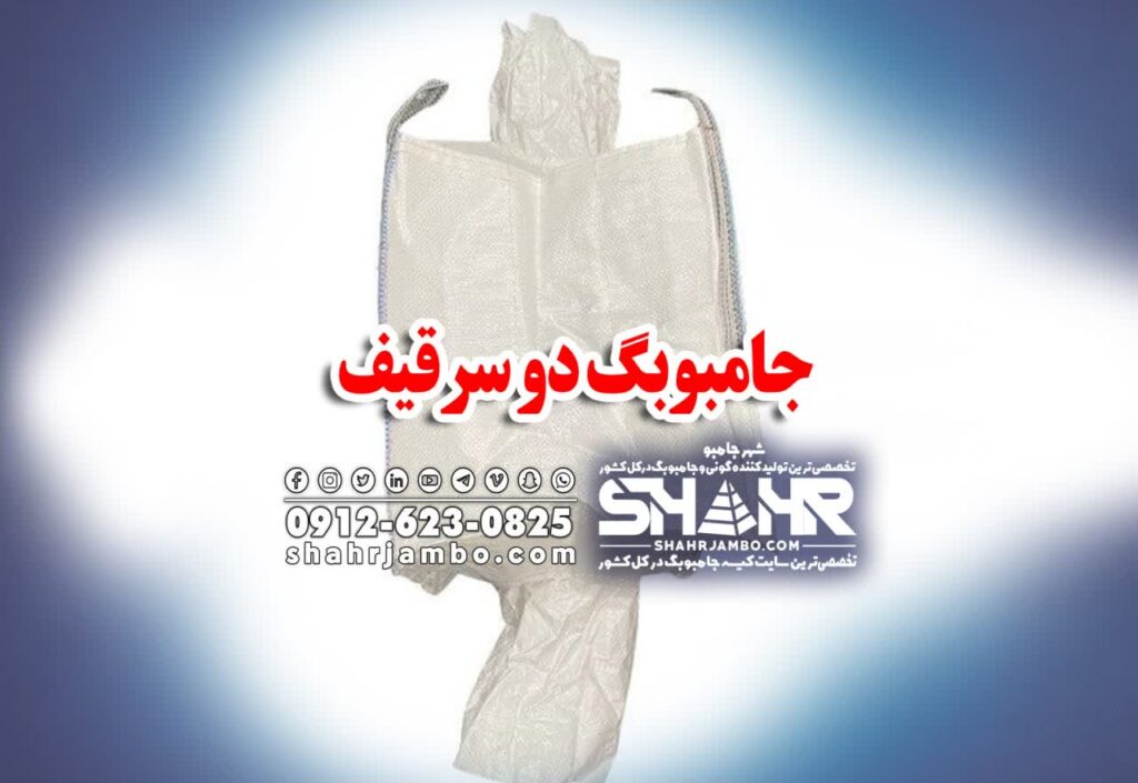 جامبوبگ یا بیگ بگدو سرقیف، دو دهانه یکی در دهانه و یکی در دهانه خروجی قیف 60 سانت وجود دارد که این نوع جامبوبگ ها و بیگ بگ ها در مصارف پودری و فله ای مصرف می شود که در سایز های مختلف و پارچه های گرم بالا مصرف می شود. کیسه جامبوبگ دو سرقیف و کیسه بیگ بگ دو سرقیف را از شهر جامبو بخواهید.