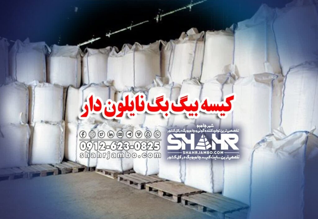 کیسه جامبوبگ نایلون دار کیسه جامبوبگ نایلون دار،نایلون لایه داخلی در جامبوبگ تعبیه یا به صورت جداگانه به مشتریان عزیز ارائه می گردد که این استاندارد توسط کارخانه مبدا یا بارگیری تعیین می شود که باید در این صورت یا بصورت چسب دار یا به صورت فله ای ارائه شود.