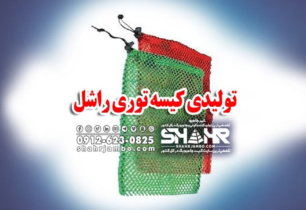 کیسه توری راشل یک از پر کاربردترین نوع بسته بندی انواع محصولات شناخته می شود که این کیسه توری ها در سایز های مختلف و مدل های مختلف جامبوبگ تولید می شود که با افتخار کارخانه شهرجامبو با دو خط تولید کیسه توری راشل بسته بندی خدمت گذار مشتریان عزیز و گرامی می باشد. این محصولات به عنوان ضربه گیر و محافظ کلی محصول تولید و مصرف می شوند که بسیار ارزان قیمت می باشد.