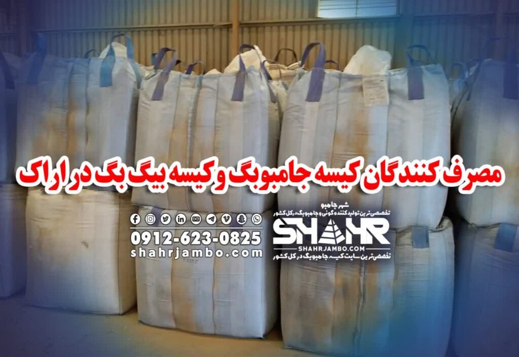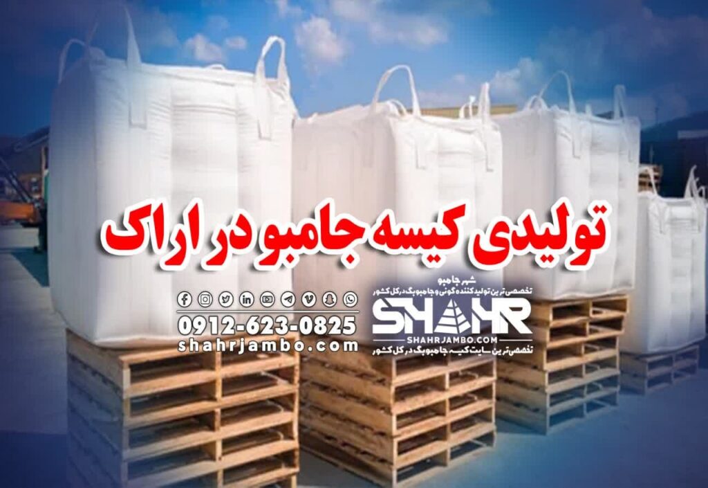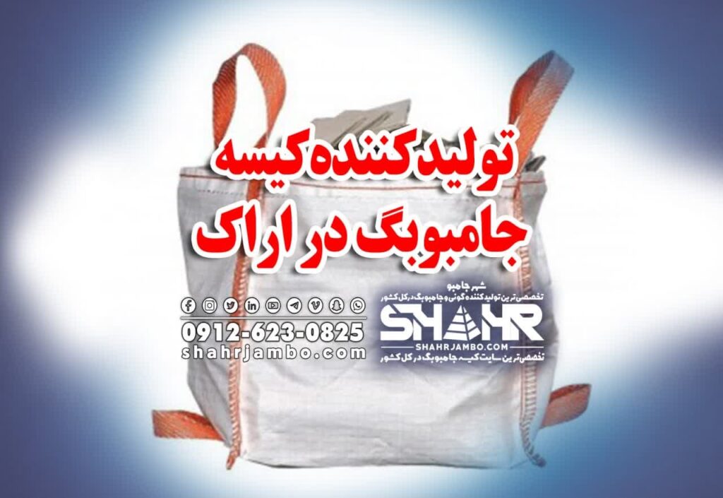 بزرگترین تولیدی و تولید کننده کیسه جامبوبگ و کیسه بیگ بگدر اراک، گروه کارخانجات شهرجامبو می باشد که با تولید انواع کیسه بیگ بگ و کیسه جامبوبگ در تیراژ 1500 تخته در روز است که با بهترین متریال و بهترین دستگاه روز دنیا تهیه و تولید می شود که در اراک واقع شده است که با سریع ترین حالت ممکن این کیسه ها به دست مشتریان در شهر اراک خواهد رسید. شهرجامبو نمایندگی تولید جامبوبگ در اراک است.