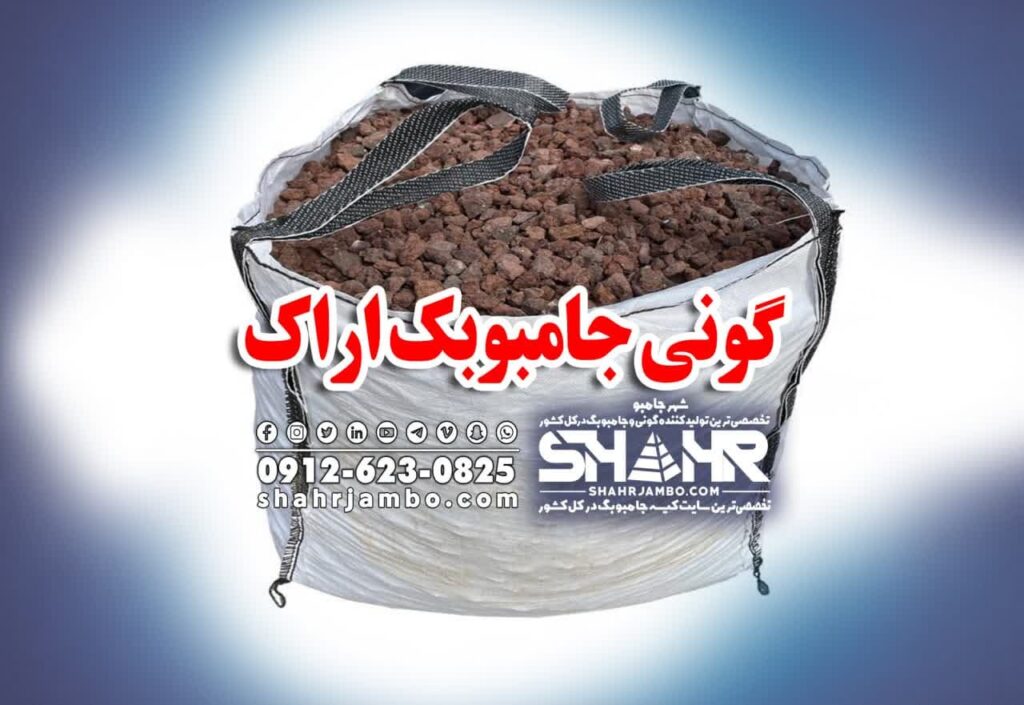 گونی جامبوبک اراک گونی به کیسه هایی گفته می شود که از نخ های پلی پروپیلن تولید می شود، گونی جامبوبگ به گونی های گفته می شود که یک تن الی 2 تن را به آسانی حمل و جابجا می کنند. گونی جامبوبگ یا همان گونی بیگ بگ همان کیسه های جامبوبگ و بیگ بگ است، که به اصطلاح به آن ها گونی می گویند، گونیجامبو اراک برای مصارف فله ای و شیمیایی استفاده می شود. گونی جامبوبگ در مصارف کیسه چینی مواد نا فرم و محصولات بسته بندی نیز مصرف می شود که بسته به نسبت آنها سایز و مدل های آن تغییر می نماید.