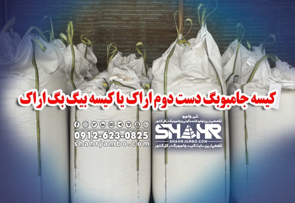 کیسه جامبوبگ دست دوم اراک یا کیسه بیگ بگ اراک کیسه جامبوبگ دست دوم یا کیسه بیگ بگ دست دوم اراک، برای مصارفی فله ای گچ و سنگ آهن مصرف میشوند که بیشتر این کیسه ها برای مواد فله ای مصرف می شوند تا به کارخانه های مبدا برسند، کیسه جامبوبگدست دوم باید بدون چاپ باشد و ارتفاع این کیسه 160 و عرض 95 است که کیسه بیگ بگ دست دوم پتروشیمی هستند که برای مصارف زیاد از این کیسه ها مصرف می شوند.