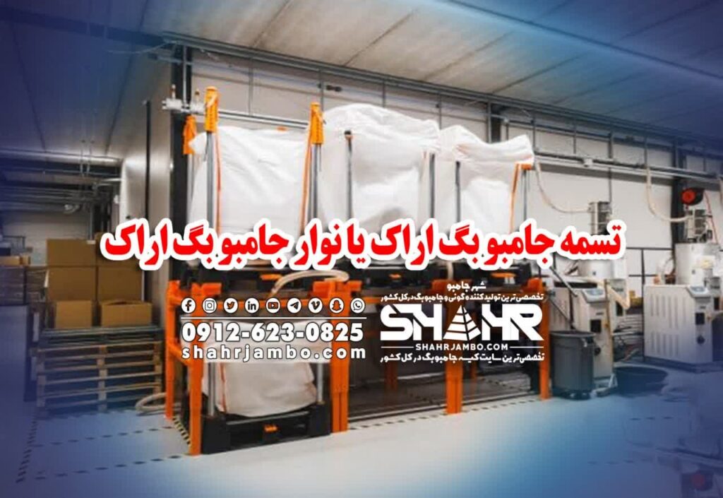 تسمه جامبو بگ اراک یا نوار جامبو بگ اراک تسمه جامبوبگ یا نوار جامبوبگ اراک به دسته های نگهدارنده کیسه جامبو بگ گفته می شود که از نخ های تار و پود پلی پروپیلن درهم تنیده شده تولید می شوند که این تسمه ها یا نوار قابلیت تحمل و کشش وزن تا 3000 کیلوگرم را دارا هستند و این تسمه ها نسبت به تراکم برای بارهای بیشتر نیز تهیه و تولید می شوند که برای خرید عمده تسمه جامبو بگ می توانید باشماره ذیل تماس حاصل فرمائید. شماره تماس 0825-623-0912 واحد مشتریان