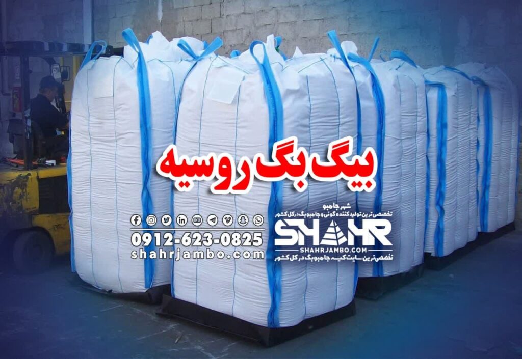 کیسه بیگ بگ روسیه کیسه سفید های جامبویی ها ی دوخت ابریشمی هستند که در مصارف پودری در روسیه استفاده می شود که این کیسه بیگ بگ ها هزینه بسیار زیادی برای تولید دارد که این کیسه بیگ بگ ها صادراتی از ایران یک سوم قیمت تولید در روسیه می باشد به خاطر همین صرفه اقتصادی صادرات بسیار به صرفه می باشد.